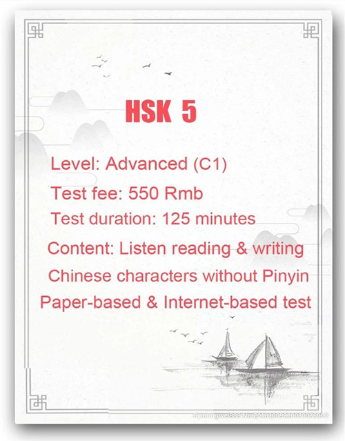 The HSK 5 is intended for students have mastered 2500 commonly used words and related grammar patterns.