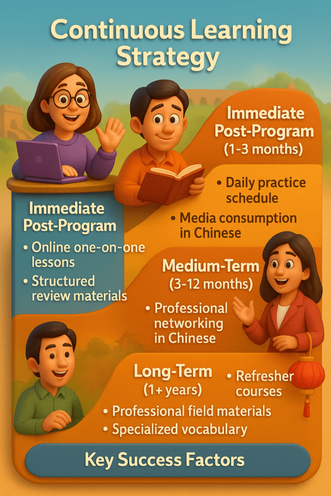 Post-immersion maintenance is crucial. Our alumni who maintain or improve their Chinese follow this pattern: